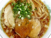 鶏がらと小魚をじっくり煮込んだ味わい深い豚骨醤油。  麺はストレート平麺。ラーメン好きな店主が脱サラして、尾道ラーメンを食べ歩き、日々研究を重ねて、昨日よりうまいラーメンを作りたいという熱意のこもったラーメン。 今ではテレビ・新聞・雑誌にも取り上げられる人気店。